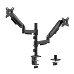 Gembird MS-D2ST-01 je podesivo postolje – stoni nosač za dva monitora, namenjen ekranima od 17 do 32 inča. Držač sa stabilnom osnovom od kaljenog stakla omogućava montažu ekrana bez potrebe za bušenjem radnog stola. Pogodan je za radne prostore gde se koristi više displeja i gde su važni preglednost i urednost.